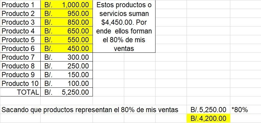 - ¿Qué productos o servicios representaron el 80% de tus ventas? Este punto lo obtienes así: